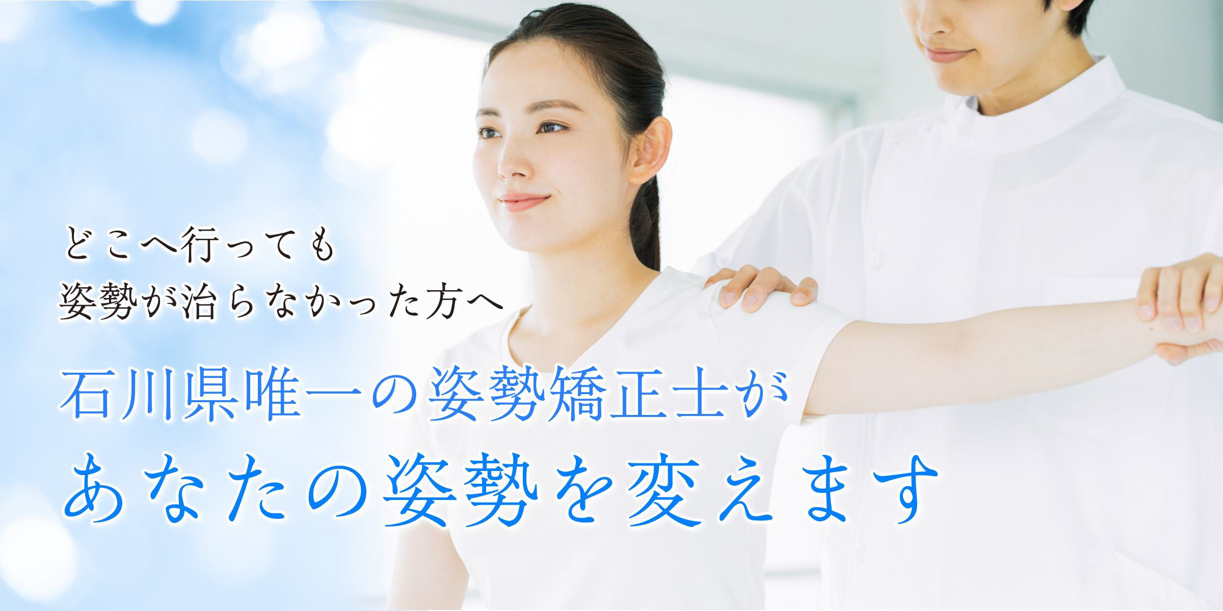 石川県で唯一の「姿勢矯正士」として、これまで多くのお客さまの姿勢のお悩みに向き合ってきました。猫背・反り腰・巻き肩・ストレートネックなど、どこへ行っても改善しなかった不調には必ず原因があります。