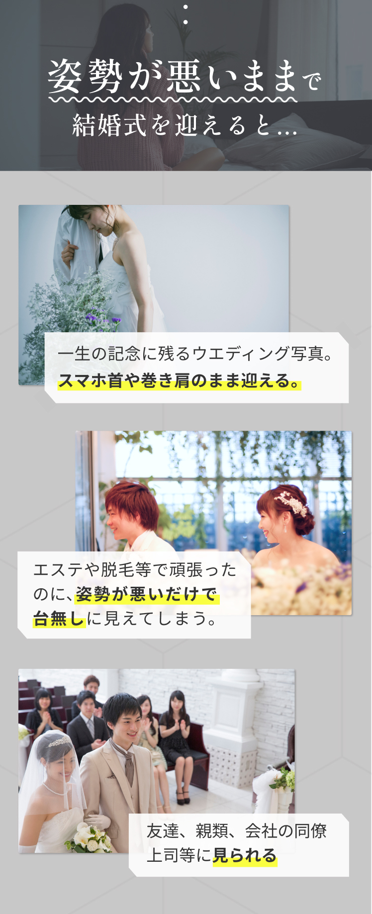 結婚式に向けて、全身を引き締めたい!姿勢を治したい!