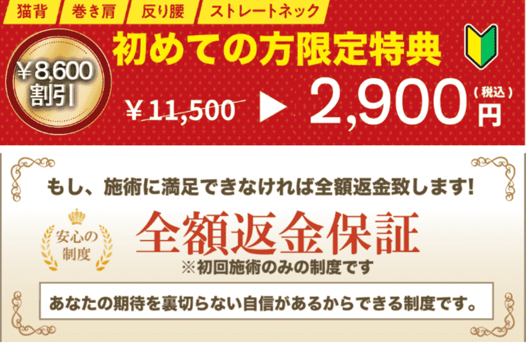 | 重度猫背ストレートネック治療5カ月コース | 385,000円 |